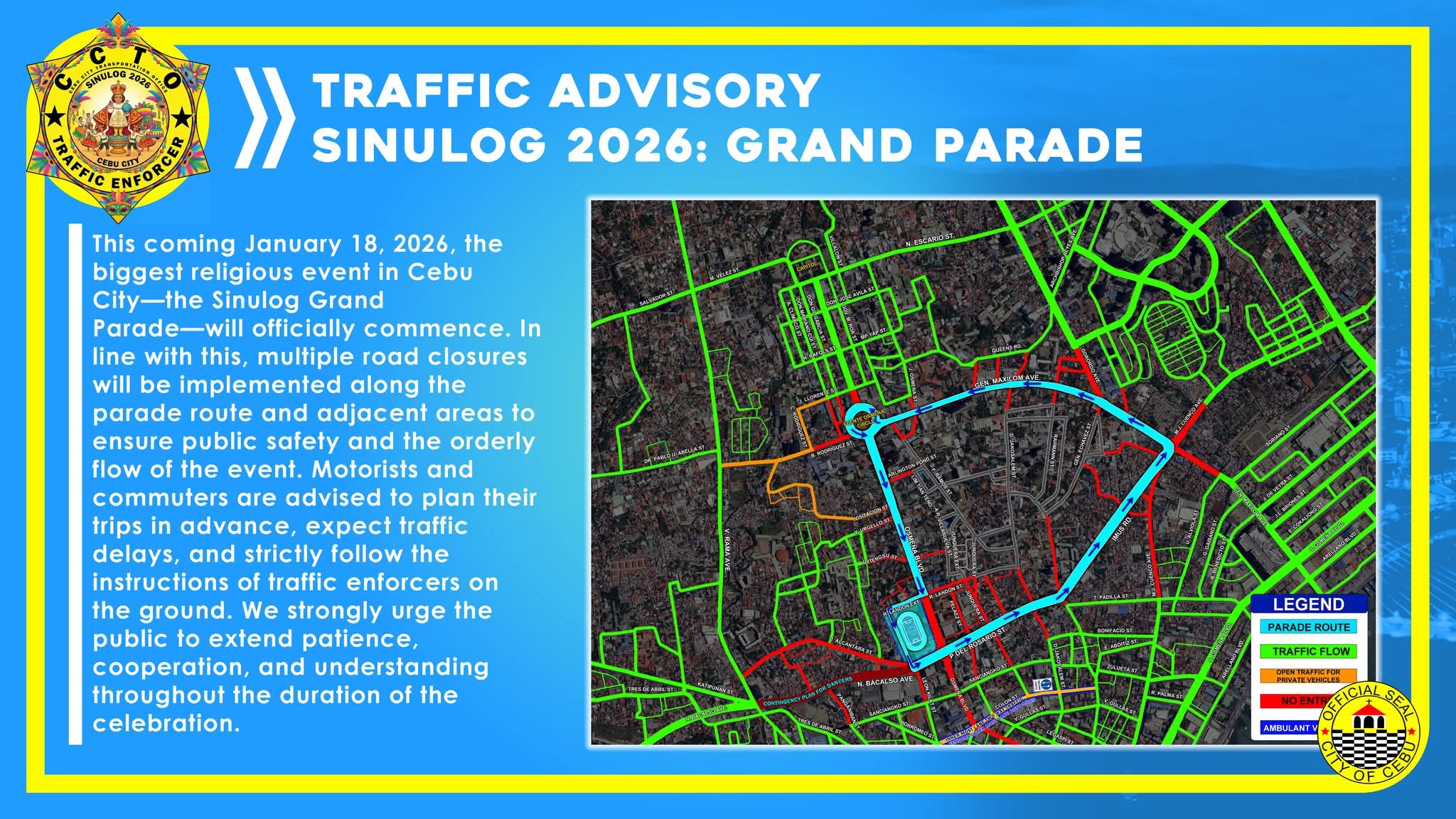 #CCTOTrafficAdvisory #Sinulog2026 #GrandParade #CebuCity #RoadSafety #TrafficUpdate