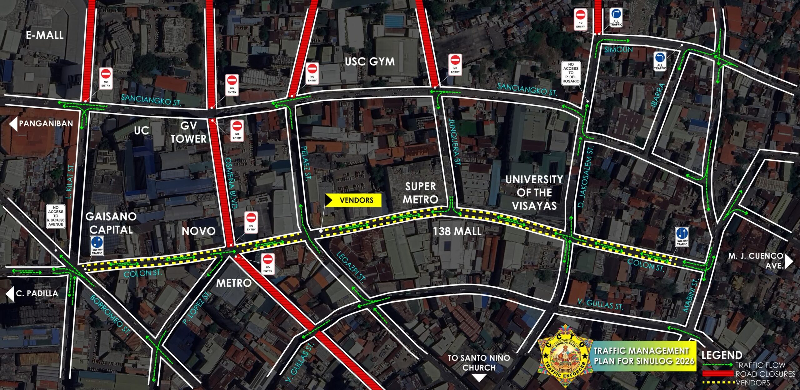 In line with the celebration of the Sinulog 2026 Grand Parade on Sunday, January 18, 2026, multiple road closures and traffic rerouting schemes will be implemented along the parade route and nearby areas to ensure public safety and the orderly movement of participants, performers, and spectators.